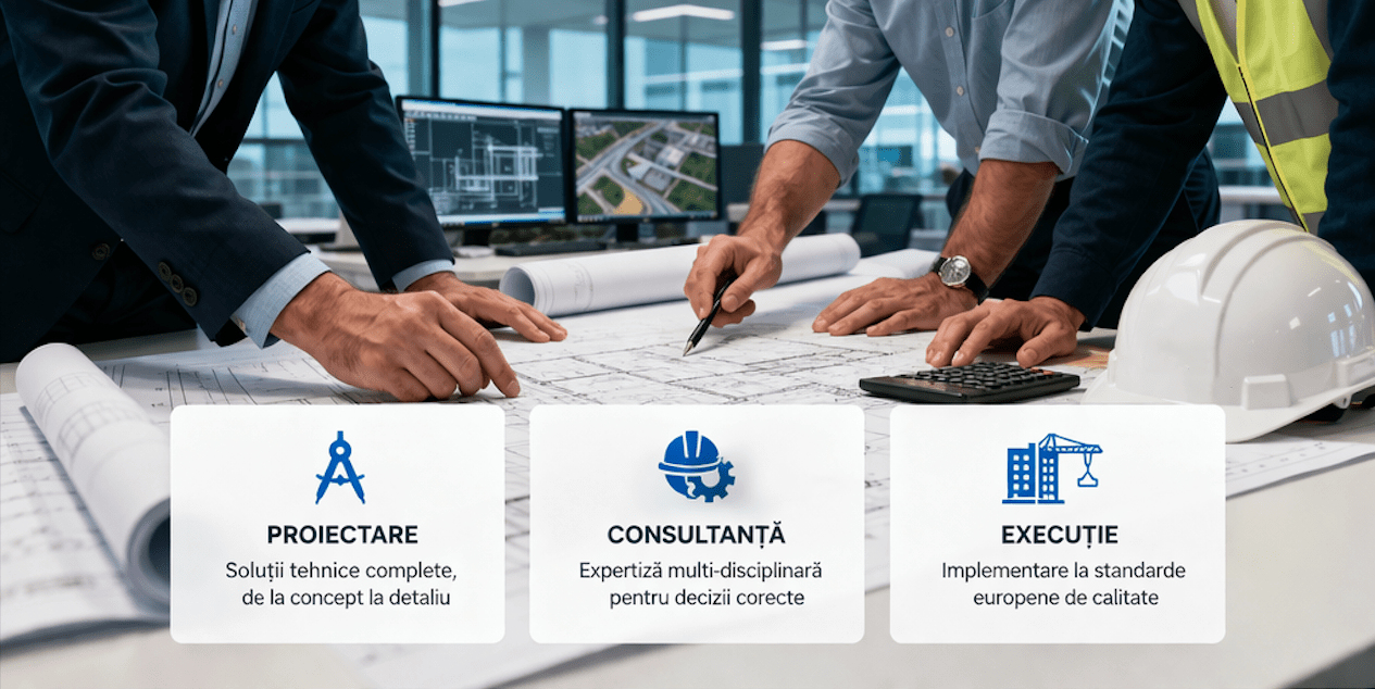 Activitatea noastră se concentrează pe furnizarea de servicii integrate de proiectare, consultanță și management al execuției lucrărilor, în conformitate cu cerințele tehnice și normativele aplicabile.